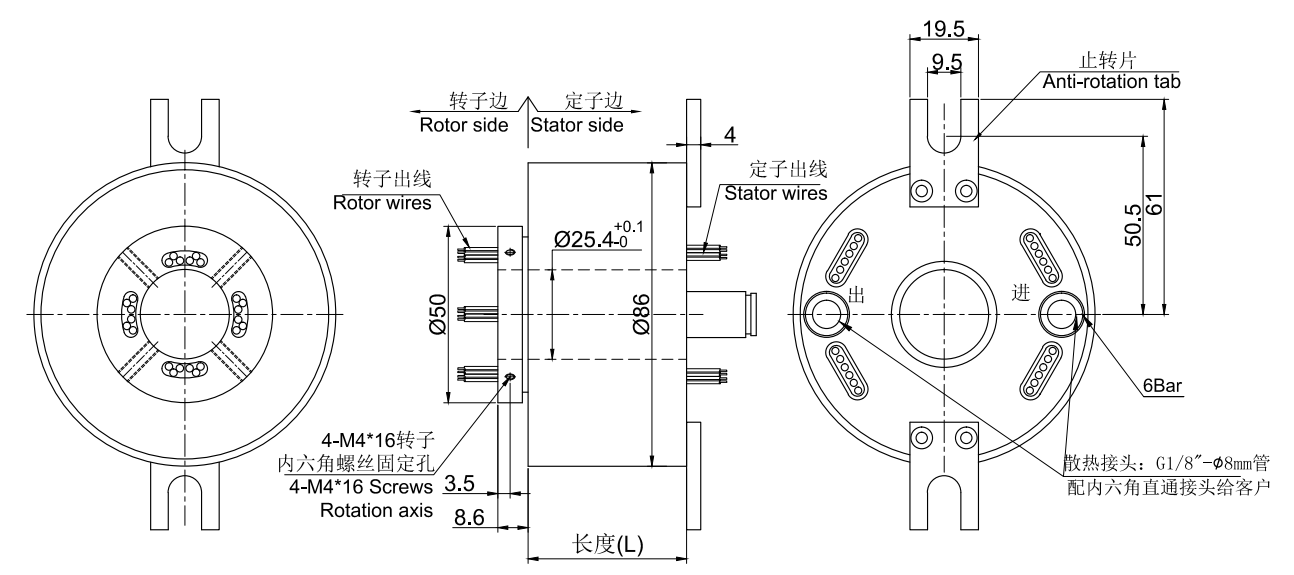 • · 高速過孔導電滑環(huán),整體精密導電滑環(huán),內(nèi)孔25mm,外徑86mm,最高轉(zhuǎn)速9000RPM。