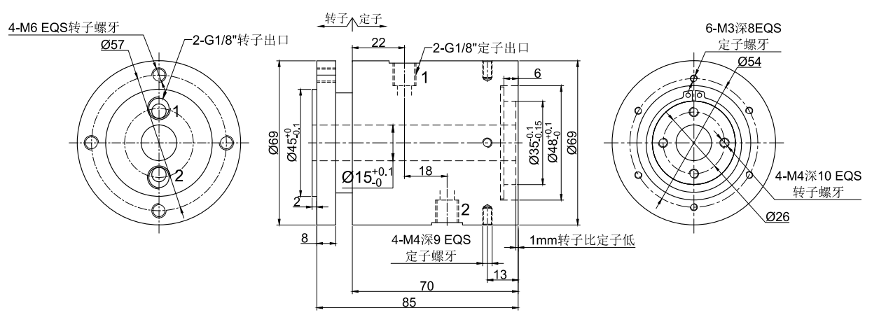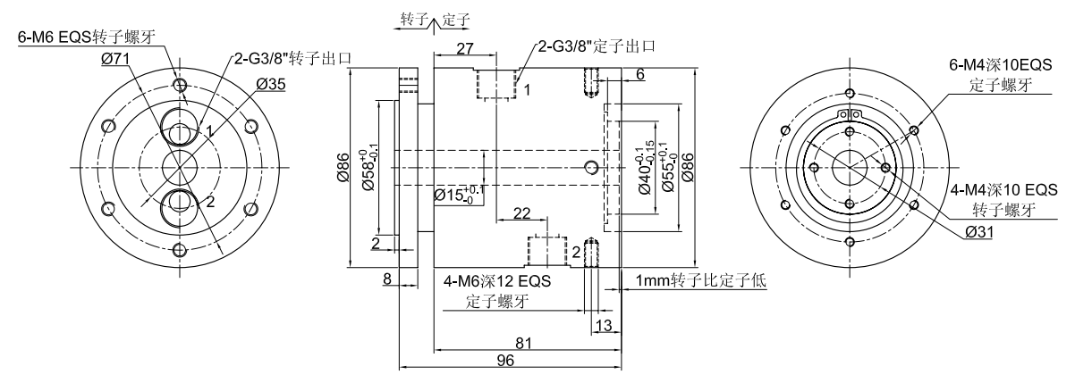 GJ2015系列 (中空15mm, 2進2出, 中空氣液旋轉(zhuǎn)接頭,氣滑環(huán),液壓滑環(huán))