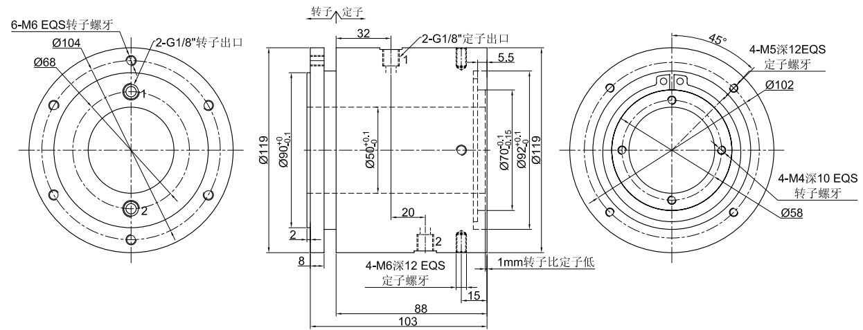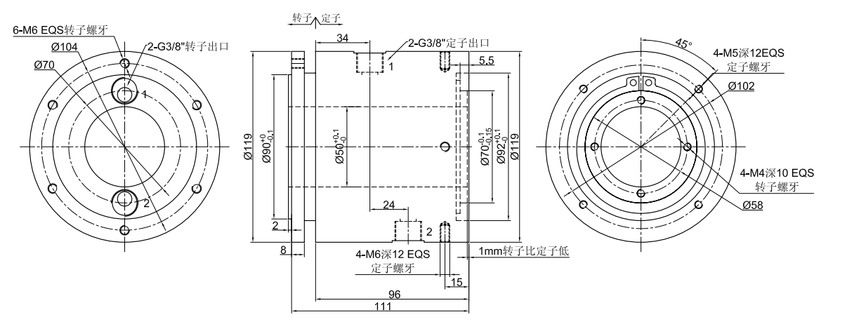 GJ2050系列 (中空50mm, 2進(jìn)2出, 中空氣液旋轉(zhuǎn)接頭,氣滑環(huán),液壓滑環(huán))
