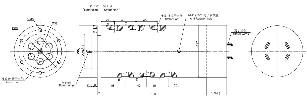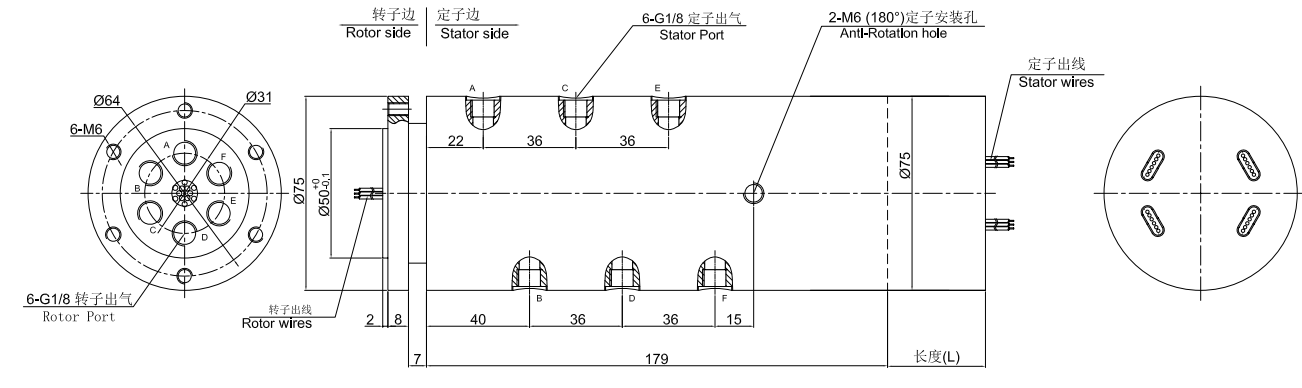 注:10A和信號(hào)(5A) 可以任意組合,最大可到96路,詳細(xì)請(qǐng)咨詢客服。6進(jìn)6出旋轉(zhuǎn)接頭,6路氣液旋轉(zhuǎn)接頭,氣液電組合滑環(huán)可在標(biāo)準(zhǔn)產(chǎn)品上進(jìn)行非標(biāo)定制,請(qǐng)咨詢客服。