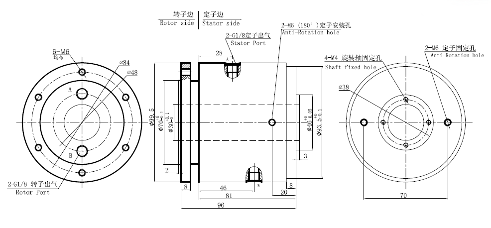 MJ2030系列 (中空30mm, 2進(jìn)2出, 中空氣液旋轉(zhuǎn)接頭,氣滑環(huán),液壓滑環(huán))