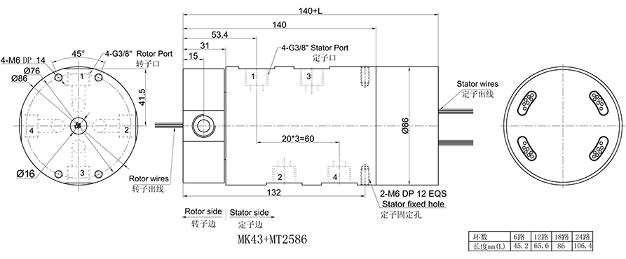 MK43系列 (4通道 氣/氣電一體 旋轉(zhuǎn)接頭/滑環(huán))