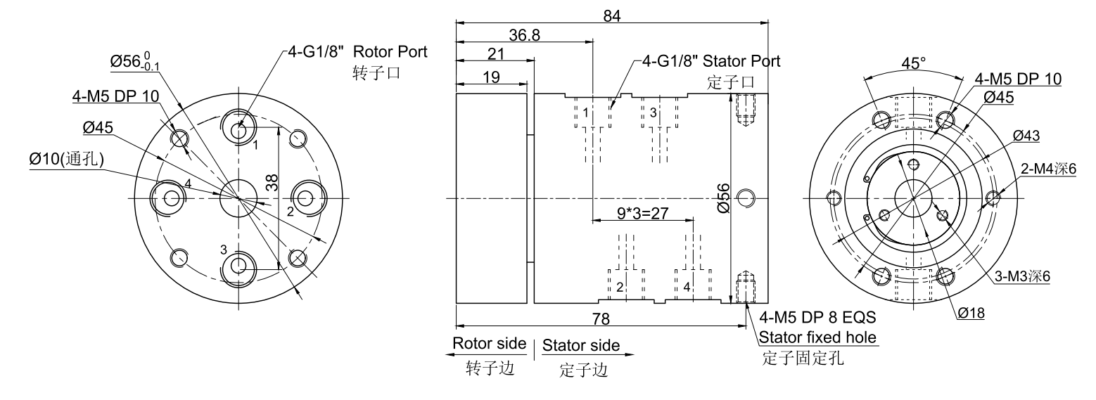 MKD41(純氣動旋轉(zhuǎn)接頭) 尺寸圖 4進(jìn)4出G1/8"牙