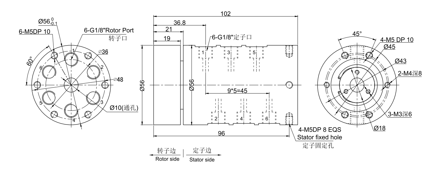 MKD61S-S56 尺寸圖 6進(jìn)6出G1/8"牙
