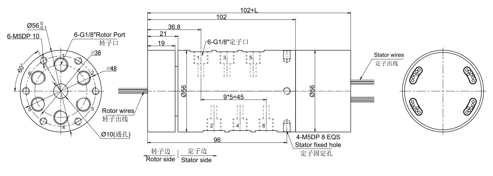 MKD61(純氣動(dòng)旋轉(zhuǎn)接頭) 尺寸圖 6進(jìn)6出G1/8"牙