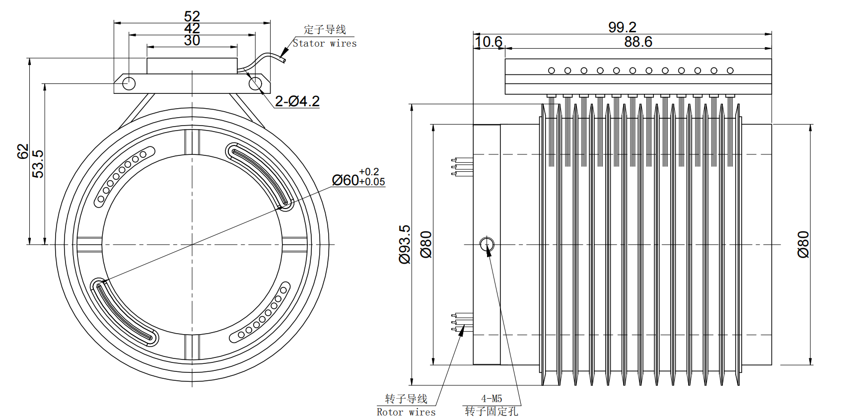 MSP260系列 (孔徑60mm, 6路10A)分體式電滑環(huán)