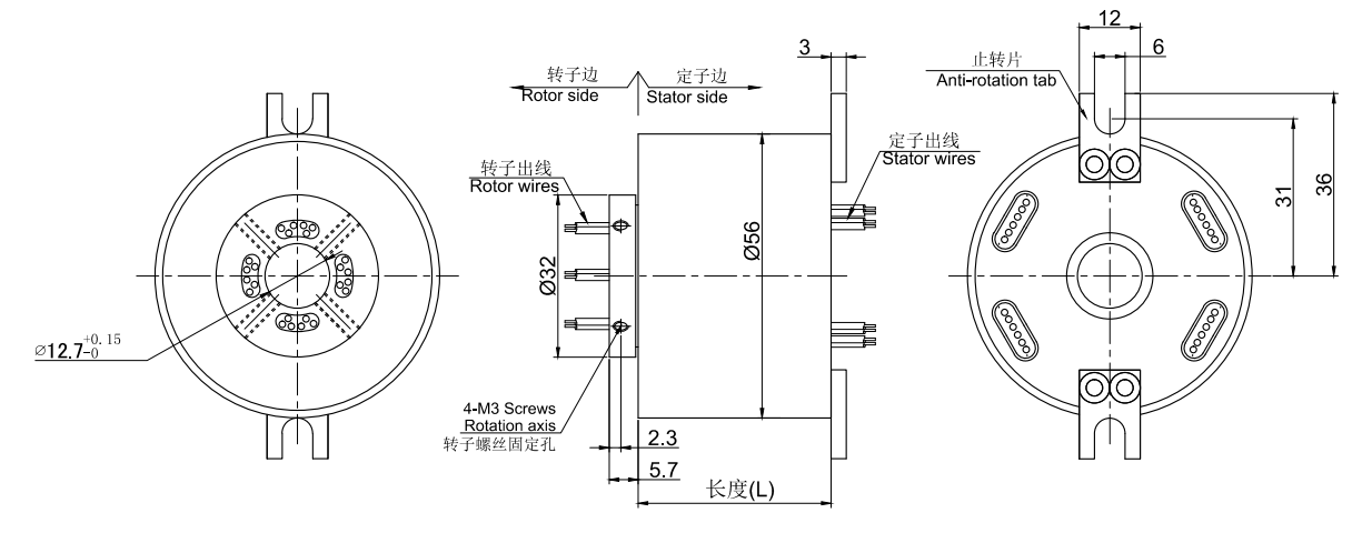 • · MT1256是標(biāo)準(zhǔn)系列過(guò)孔滑環(huán)(高速過(guò)孔滑環(huán)),,過(guò)孔直徑12.7mm(適用任何<=12.7mm),外徑為56mm精密導(dǎo)電滑環(huán)。