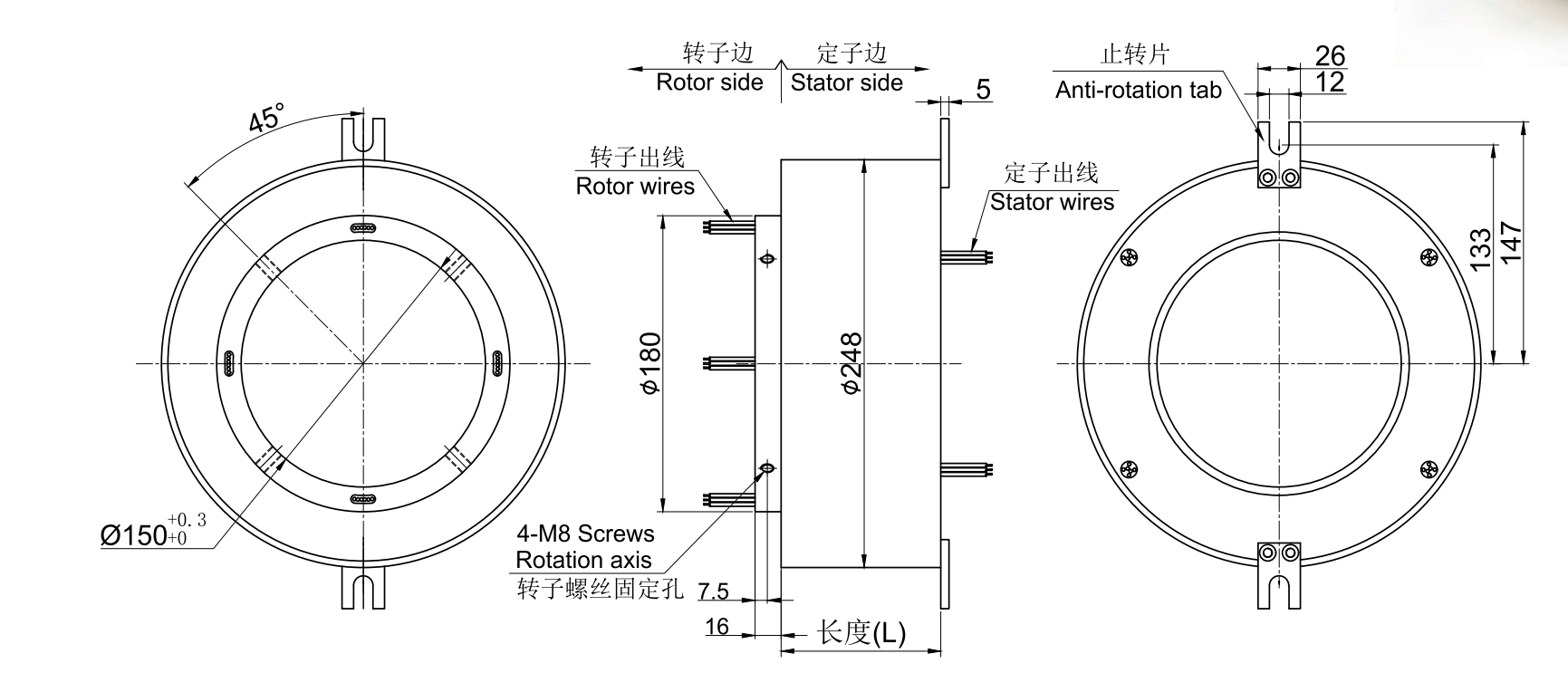 MT150248系列整體式精密導(dǎo)電滑環(huán),主要應(yīng)用于360度連續(xù)旋轉(zhuǎn)且需要保證電源,信號不能中斷的場合:多用于鋰電池生產(chǎn)設(shè)備、試驗(yàn)設(shè)備、橡膠軟管生產(chǎn)設(shè)備、畜牧機(jī)械、自動包裝機(jī)、自動裝盒機(jī)、自動灌封機(jī)、自動后踵 按摩機(jī)、注塑機(jī)滑環(huán)、攪拌機(jī)滑環(huán)等任意需要360°旋轉(zhuǎn)導(dǎo)電或傳輸各種控制信號的裝置。