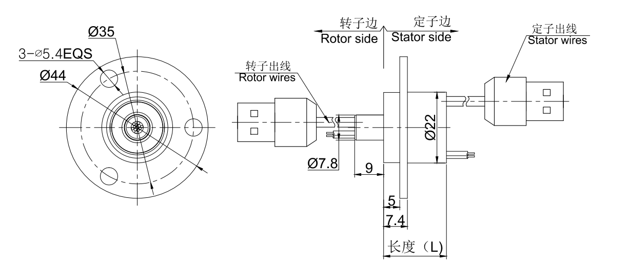 • · MUSB1221系列以太網滑環(huán), 實心帶法蘭設計, 外徑為22mm整體式結構的1通道USB1.0/USB2.0整體式精密導電滑環(huán),