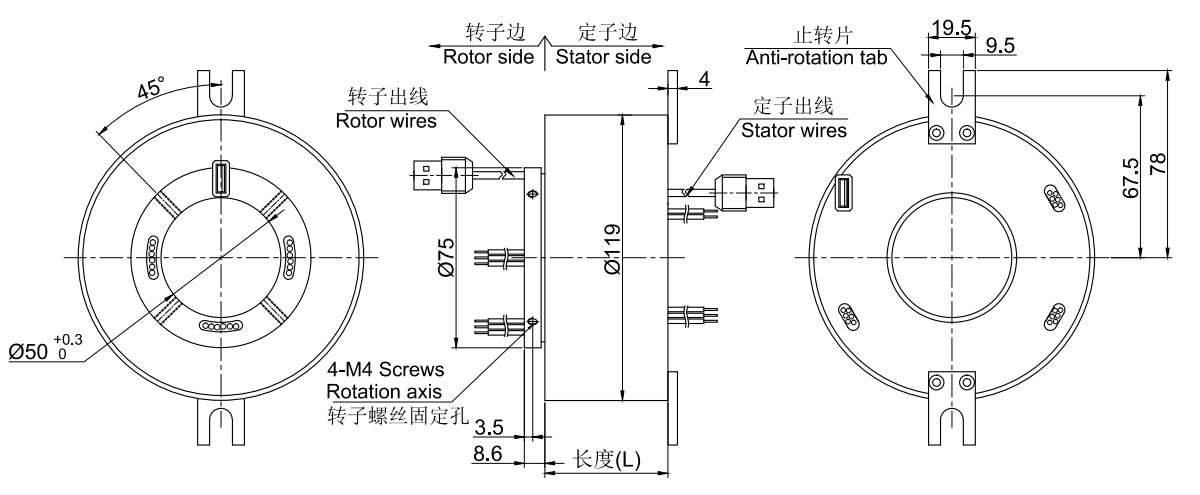 • · MUSB2501系列USB滑環(huán),內(nèi)孔38.1mm,外徑為標(biāo)準(zhǔn)99mm的緊湊型整體式結(jié)構(gòu)的1通道 USB1.0/USB2.0整體式精密導(dǎo)電滑環(huán),