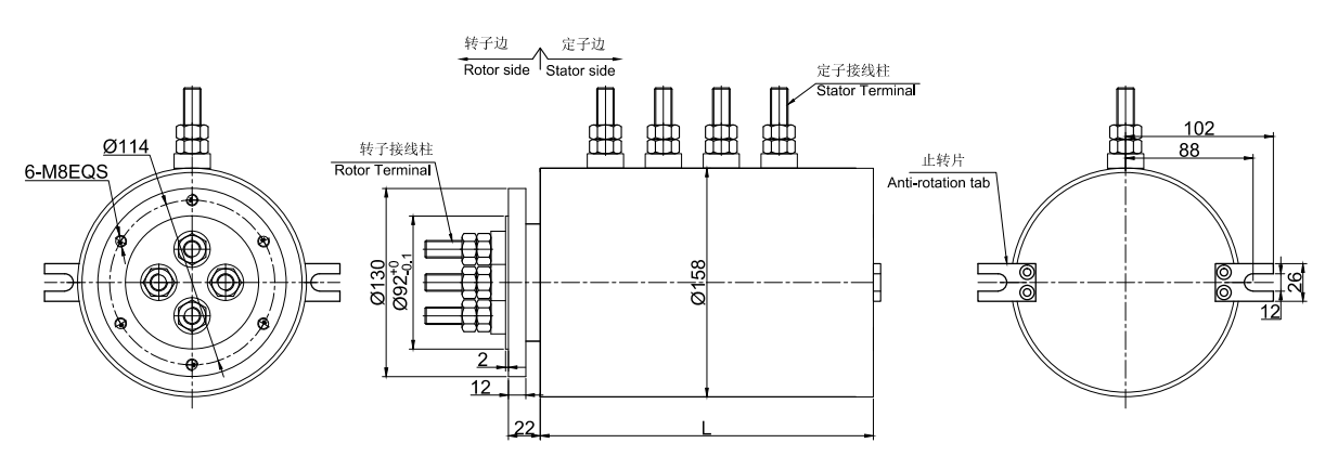 • · MW5158是超大電流專用大功率集電環(huán),轉(zhuǎn)子和定子分別采用接線柱連接,
